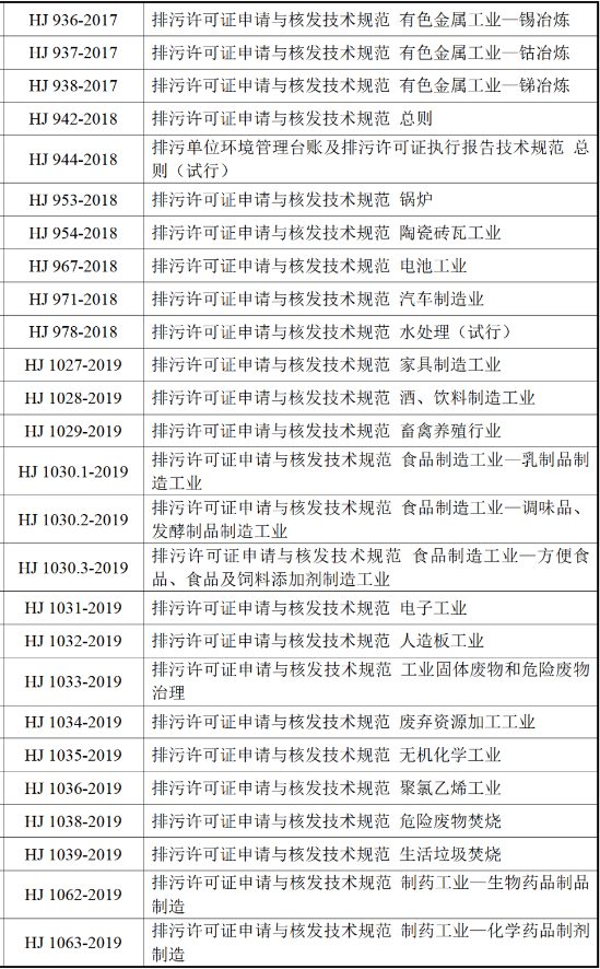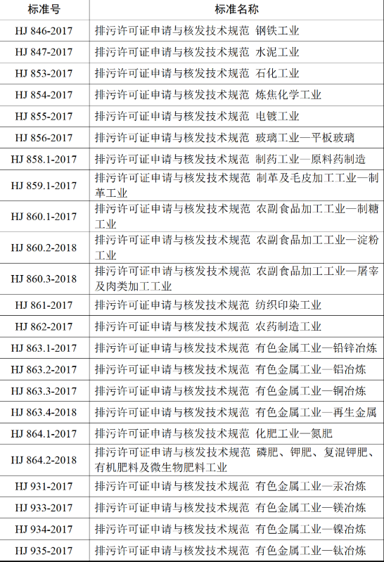 已發(fā)布的75項排污許可證申請與核發(fā)技術(shù)規(guī)范清單